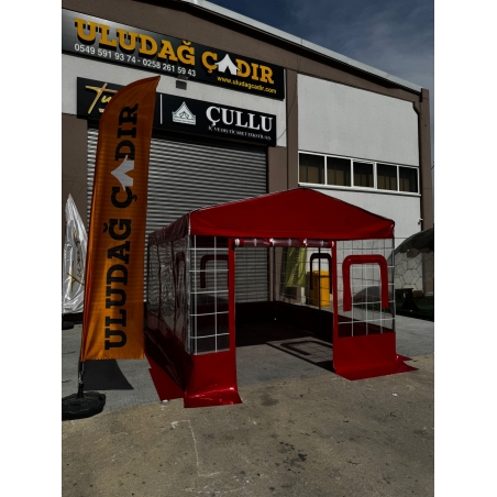Yan Duvarlarımız Komple Cırtlı olup isteğe bağlı söküp takılabilir. Yaz mevsiminde yan duvarları takmadan sadece üst kısmıyla çardak olarak da kullanabilirsiniz.